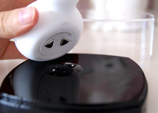 Located underneath the toy are + and - buttons. You simply hold down the + to switch the toy on and the - to turn it off. There are 3 settings, one being a pulse setting. All settings are quiet but powerful.